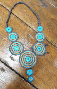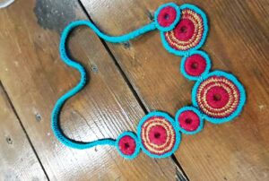 🪡✂️Z wykształcenia, podobnie jak jej mama, jest krawcową, ale zdecydowanie woli szydełko. Oprócz biżuterii tworzy też zamotki przy pomocy laleczki dziewiarskiej, robi cudne ozdoby świąteczne, haftuje. ♻️W swojej pracy twórczej często daje nowe życie starym przedmiotom, zgodnie z zasadą recyklingu. Rękodzieło towarzyszy jej od dziecka. Swój pierwszy szalik na drutach zrobiła gdy miała 6 lat…