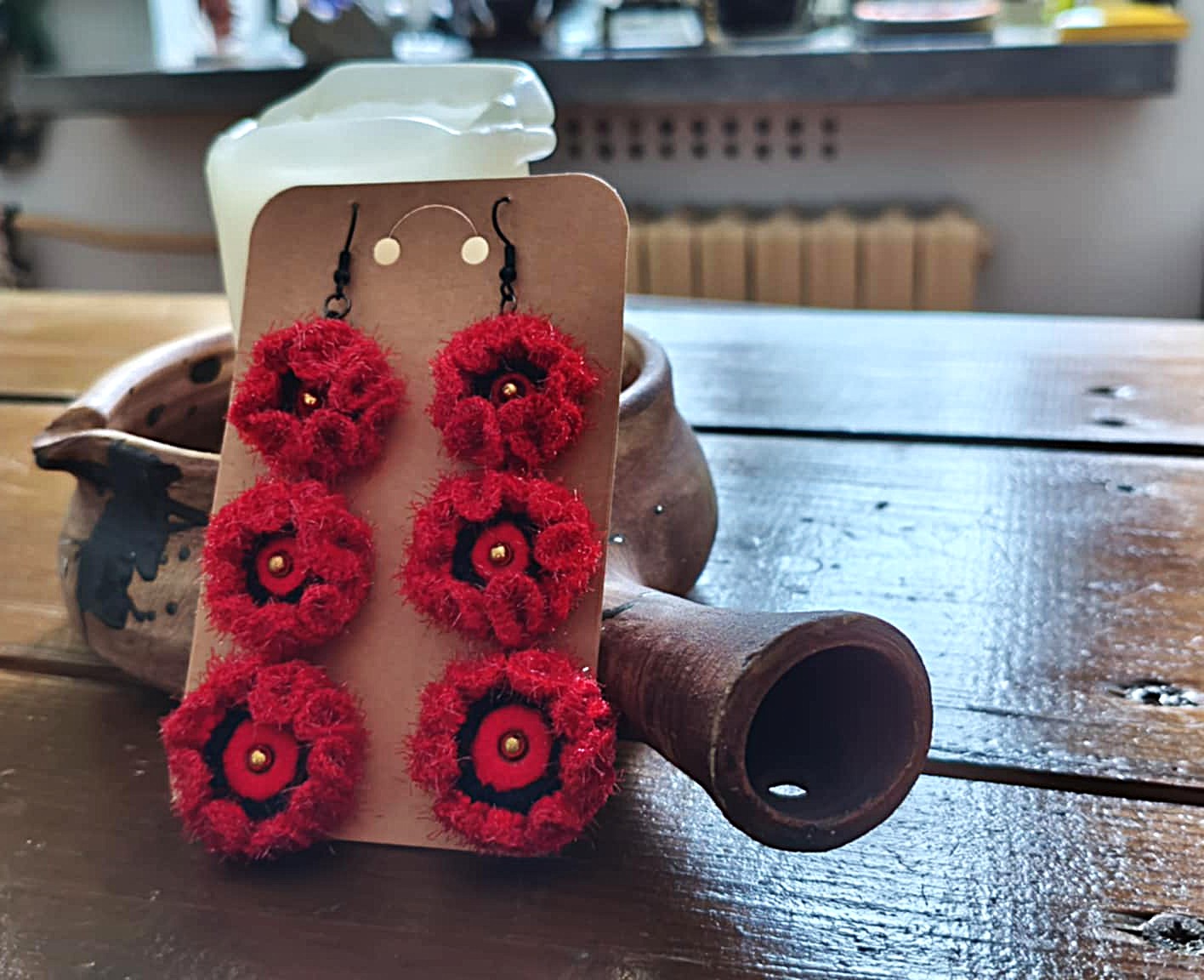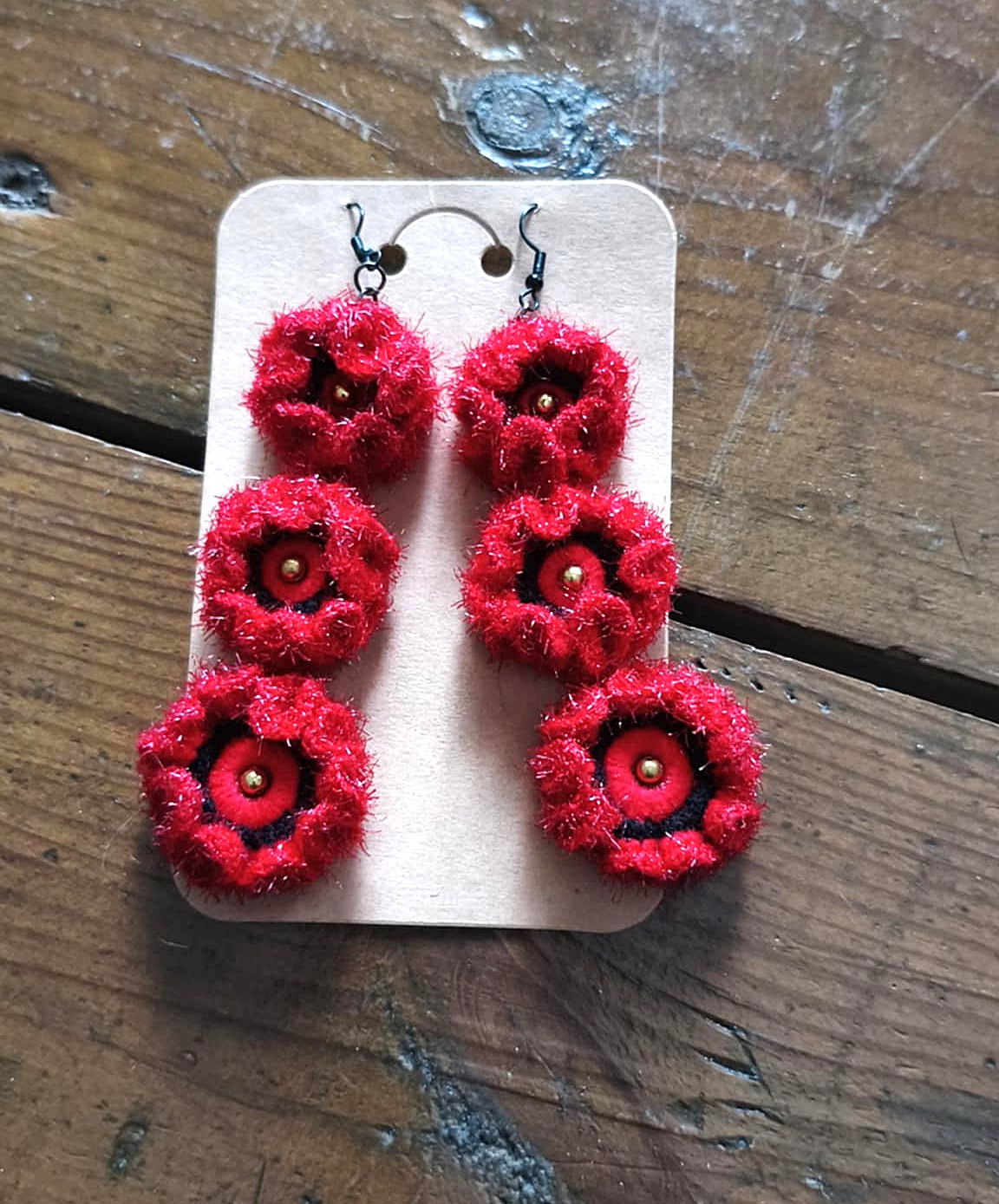 Jedyne w swoim rodzaju, zaprojektowane przez naszą twórczynię. Każda para jest tworzona z dbałością o detale, a kolorystyka przemyślana i dobrana do wzoru. Twórczyni nie korzysta z gotowych projektów, sama projektuje, zgodnie z intuicją. Kolczyki są lekkie, wygodne w noszeniu. Idealnie sprawdzą się na co dzień i na specjalne okazje. Robione na szydełku. Ich piękna czerwień podkreśli Twoją urodę i nada jej charakteru. W komplecie dodatkowe zatyczki.