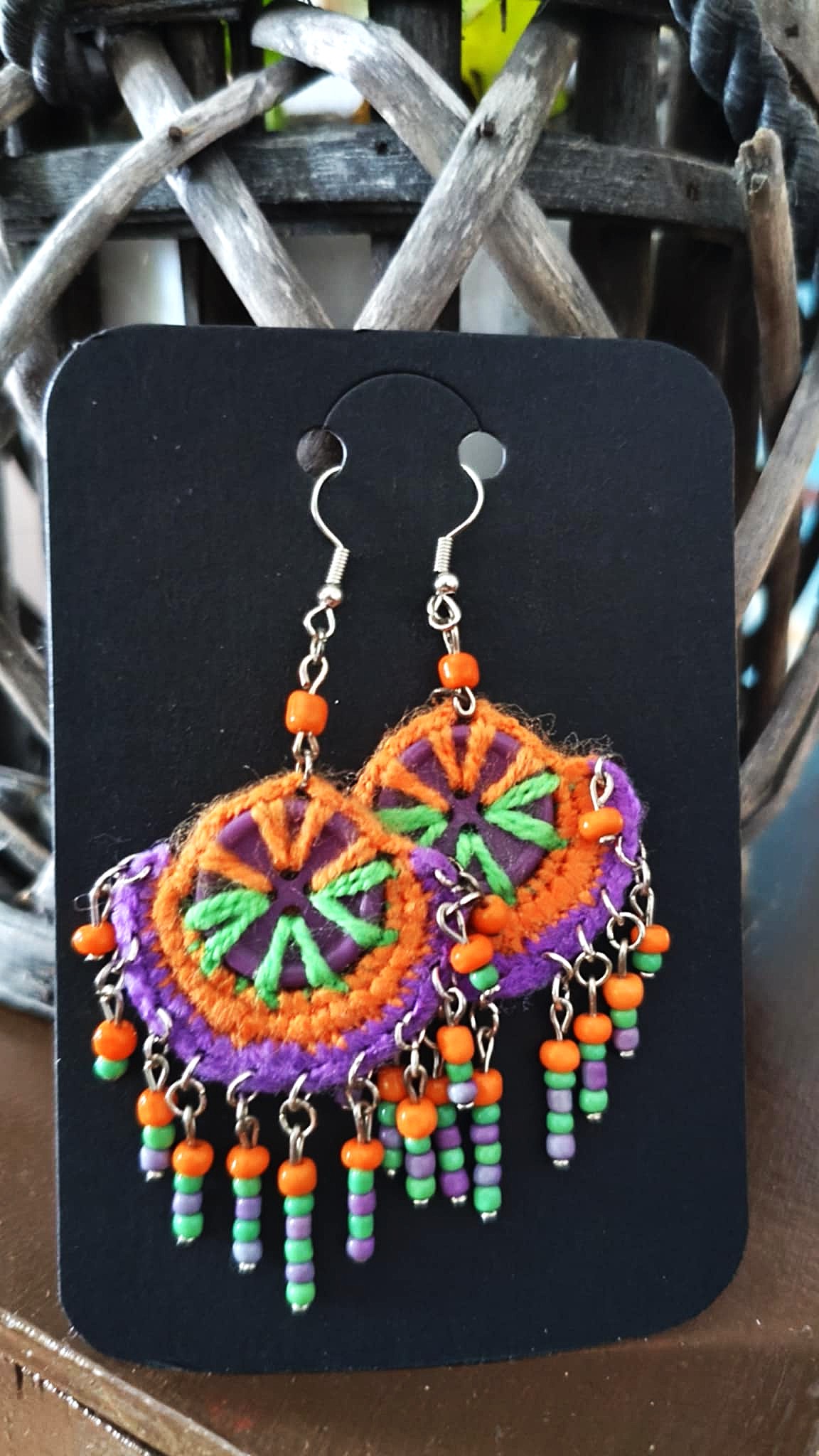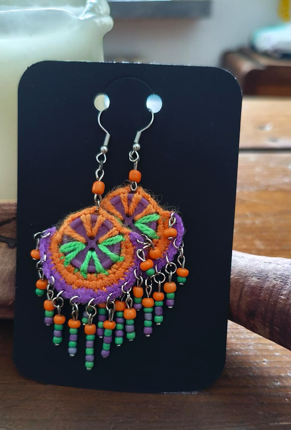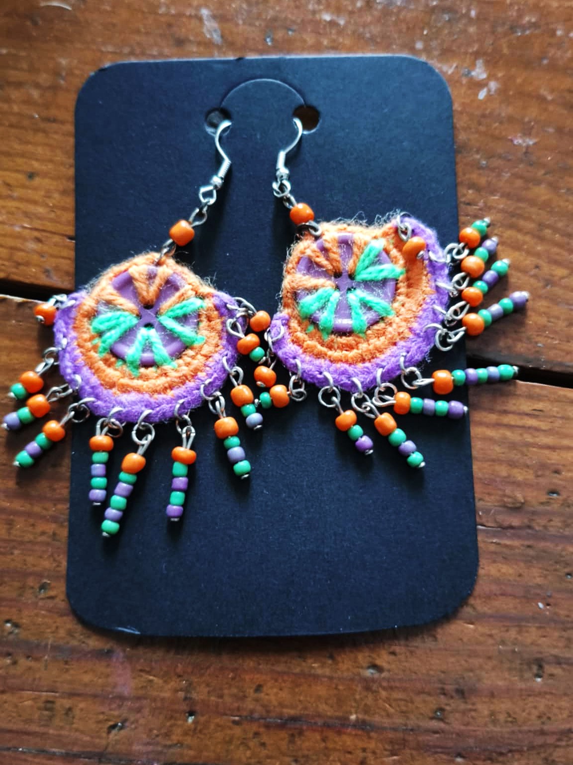 Kolczyki są lekkie, wygodne w noszeniu. Idealnie sprawdzą się na co dzień i na specjalne okazje. Robione na szydełku. Z pomysłem wykorzystane guziki, a wszystko uzupełniają kolorowe koraliki. W komplecie dodatkowe zatyczki. Dla każdego, kto docenia handmade.