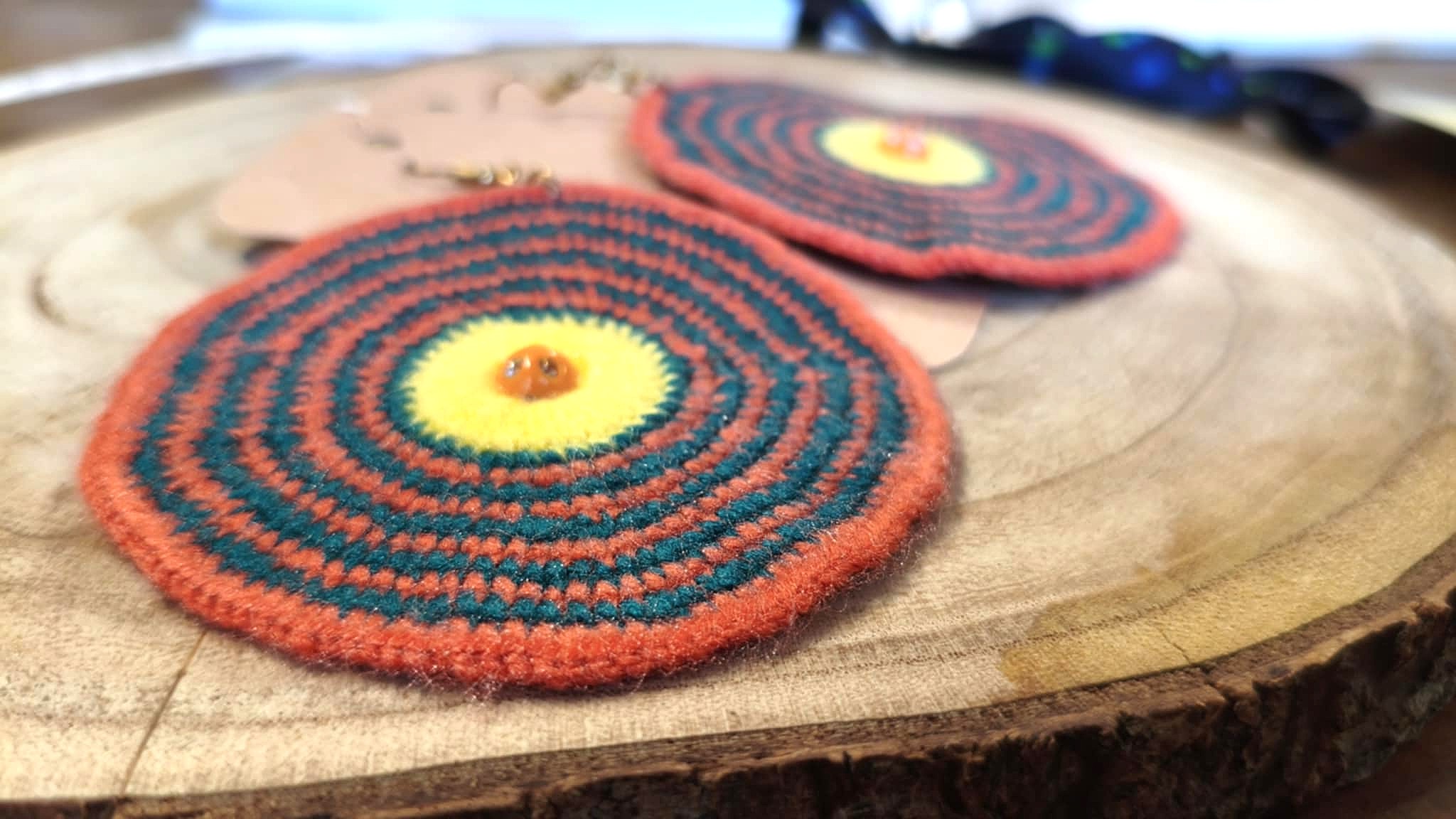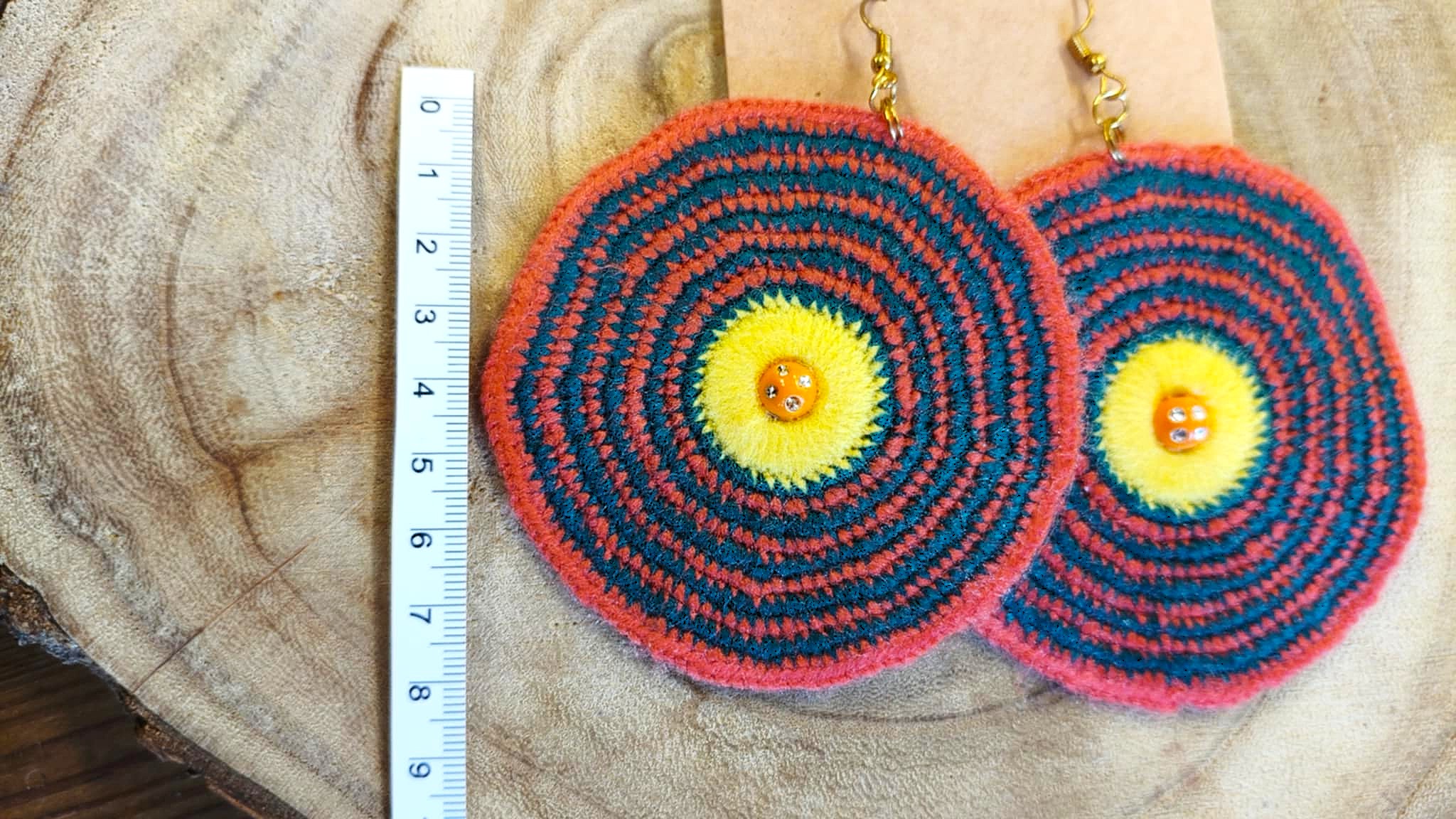 Kolczyki jedyne w swoim rodzaju, zaprojektowane przez naszą twórczynię. Każda para jest tworzona z dbałością o detale, a kolorystyka przemyślana i dobrana do wzoru. Twórczyni nie korzysta z gotowych projektów, sama projektuje, zgodnie z intuicją. Kolczyki są lekkie, wygodne w noszeniu. Idealnie sprawdzą się na co dzień i na specjalne okazje. Robione na szydełku. W komplecie dodatkowe zatyczki.