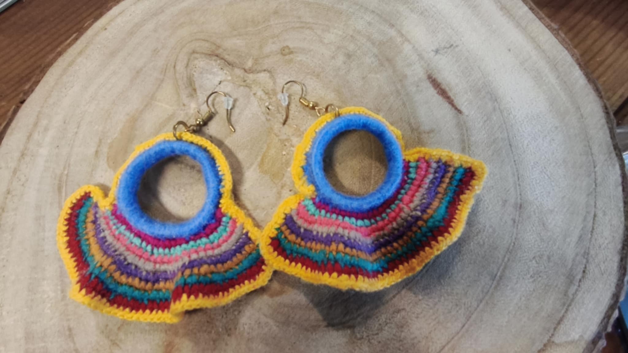 Kolczyki są lekkie, wygodne w noszeniu. Idealnie sprawdzą się na co dzień i na specjalne okazje. Robione na szydełku. Kolorowe falbany przypominają spódnice meksykańskich tancerek. Świetnie pasować będą do jednolitego stroju, idealnie ożywią Twój stonowany styl. W komplecie dodatkowe zatyczki. Dla każdego, kto docenia handmade.