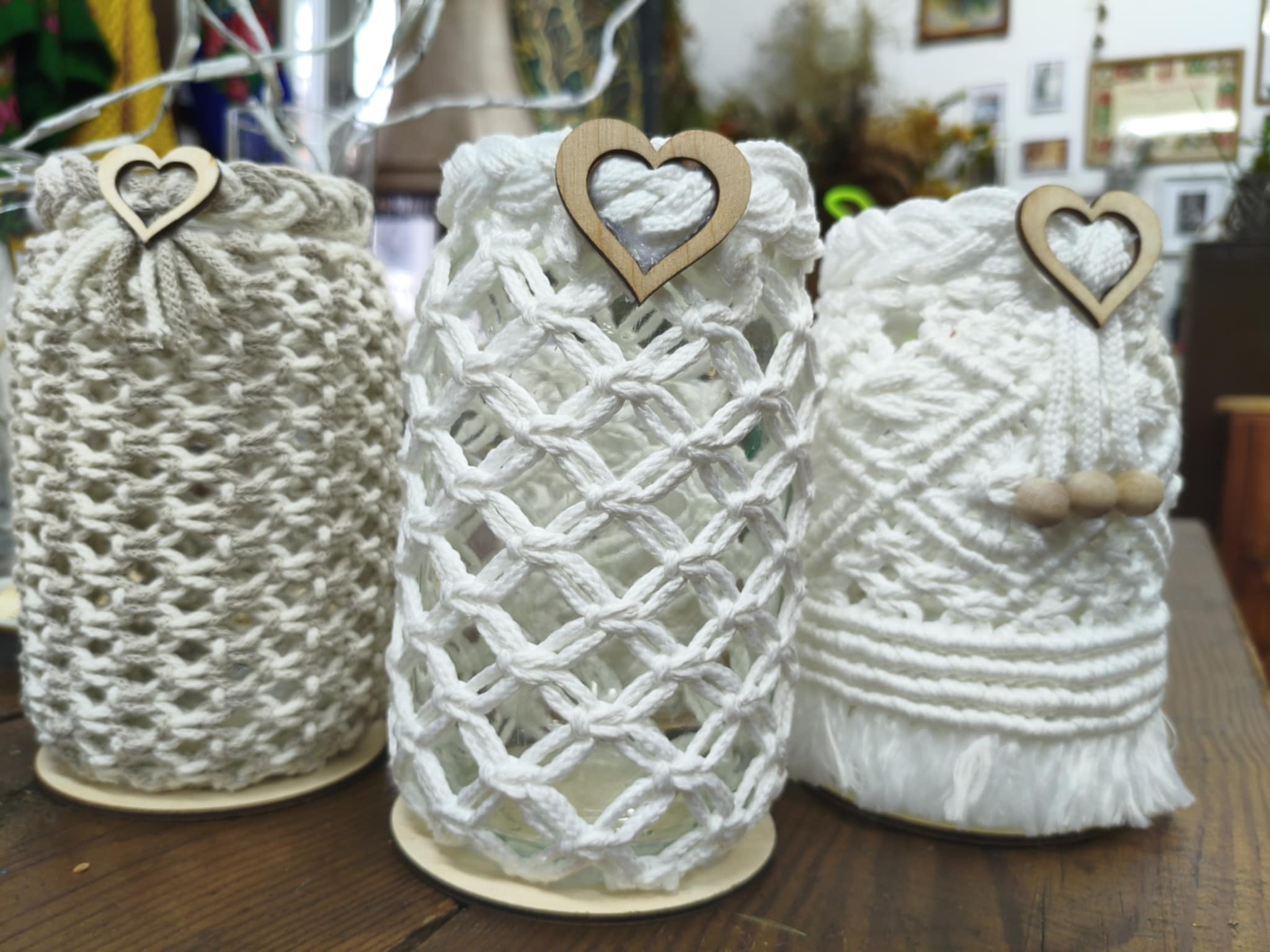 Ozdobny pojemnik wielkości litrowego słoika, jasny splot.