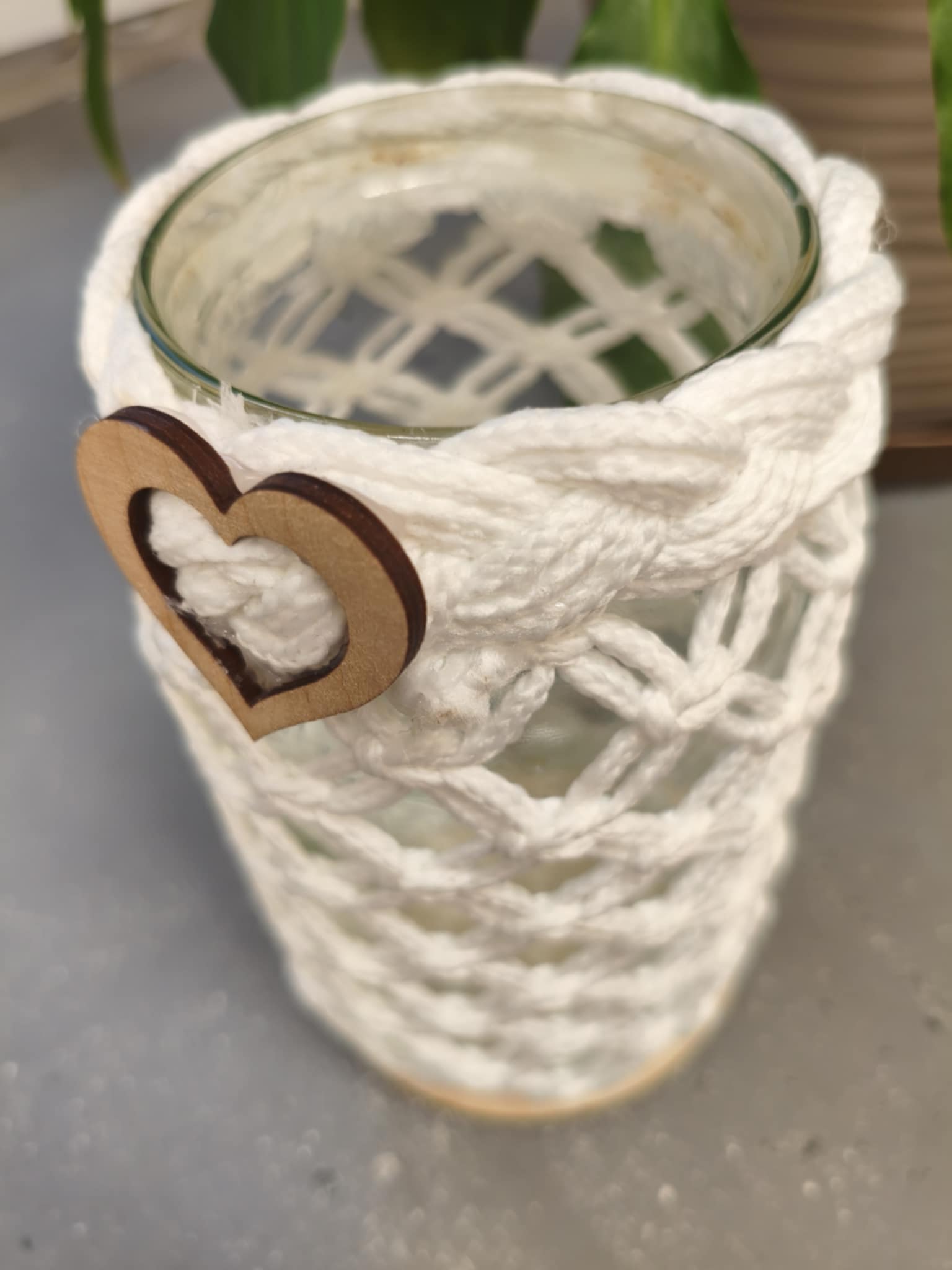 Ozdobny pojemnik wielkości litrowego słoika. Jasny splot. Idealny do biura, ale też do kuchni, sypialni czy łazienki. Nada oryginalności wnętrzu. Wykonany z precyzją i sercem.
