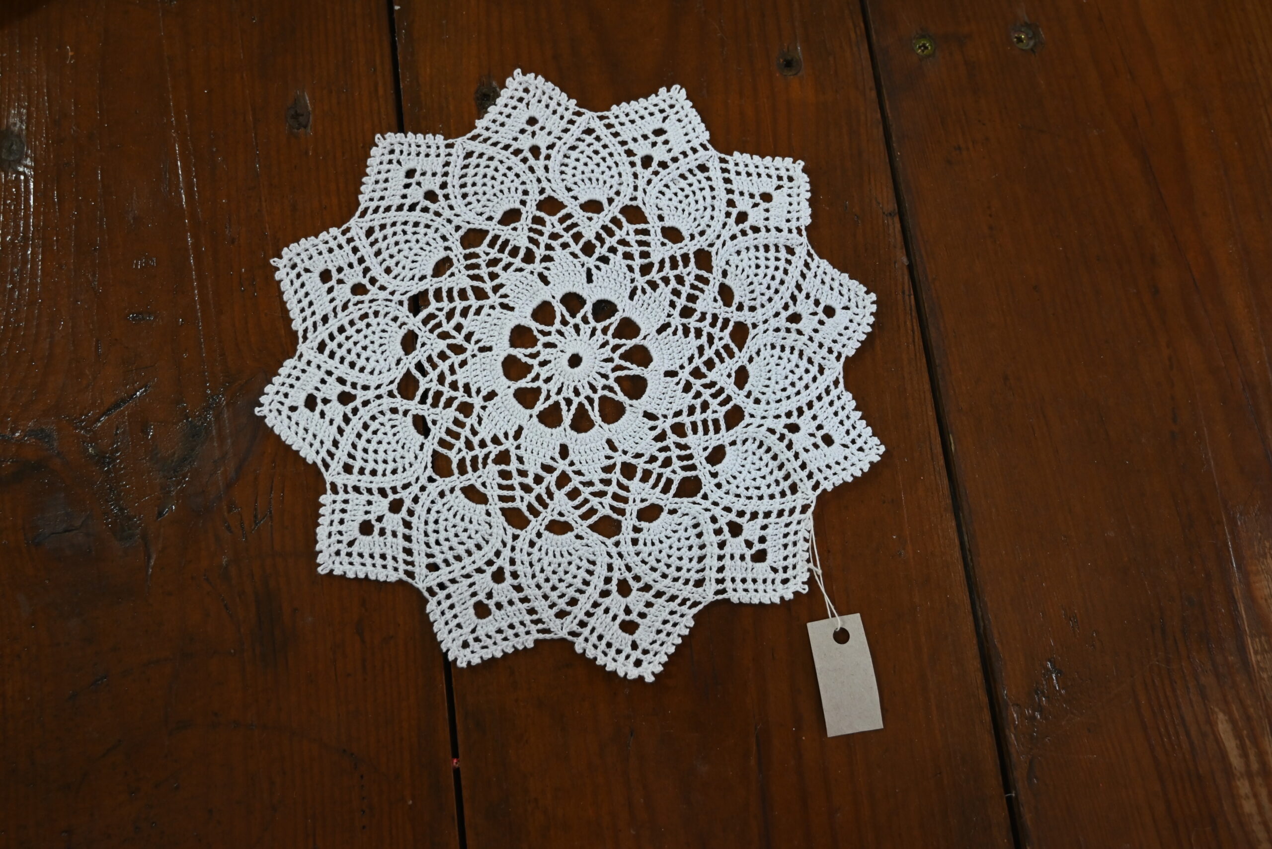 Piękna, ręcznie robiona na szydełku serwetka w kolorze czystej bieli. Okrągła, o średnicy 25 cm. Wzór przypominający kształt ananasa, stąd jej nazwa. Ponadczasowa klasyka.