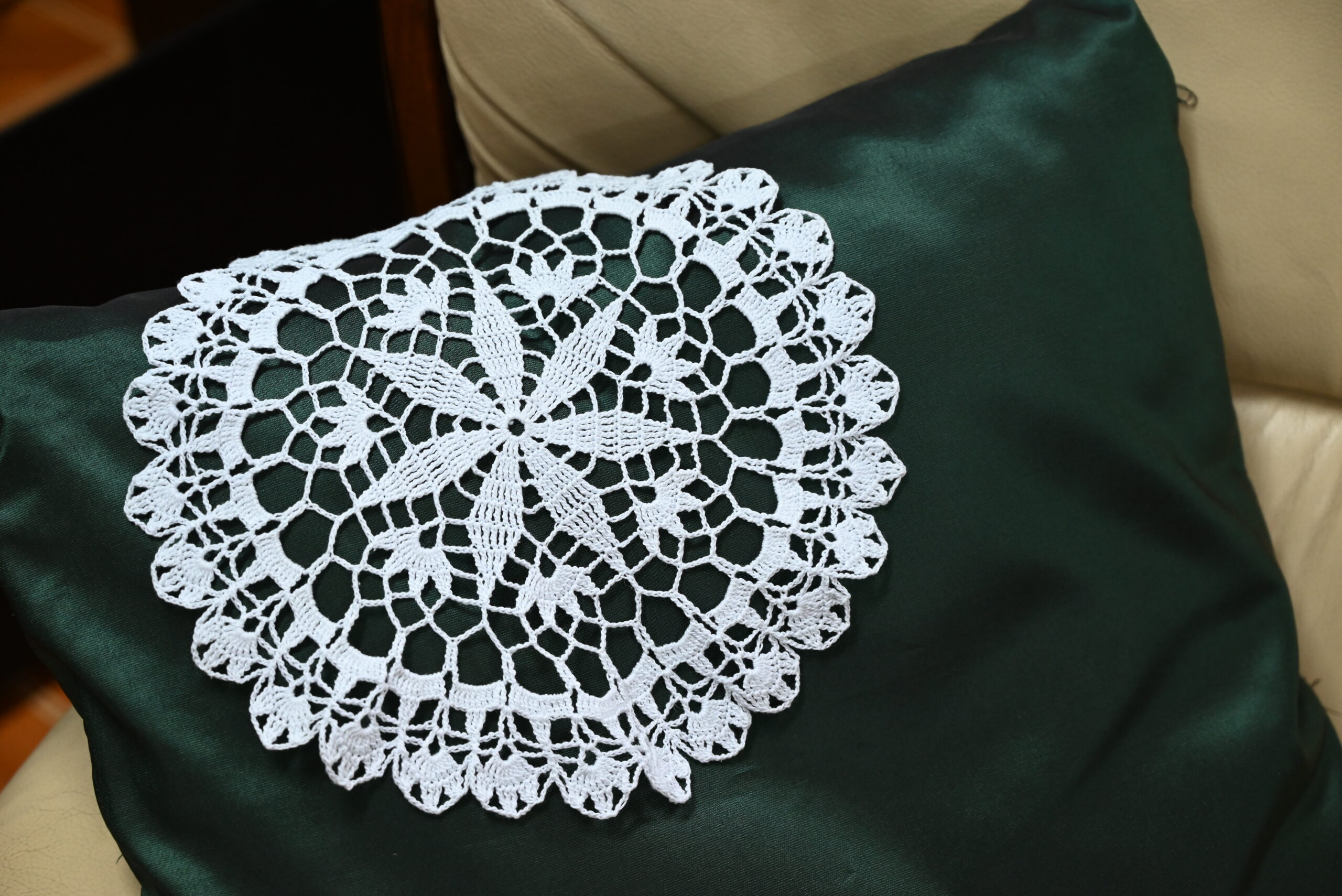Piękna, ręcznie robiona na szydełku serwetka w kolorze czystej bieli. Okrągła, o średnicy 29 cm. Wzór przypominający kształty rzeźbione w kryształach, stąd jej nazwa. Ponadczasowa klasyka.