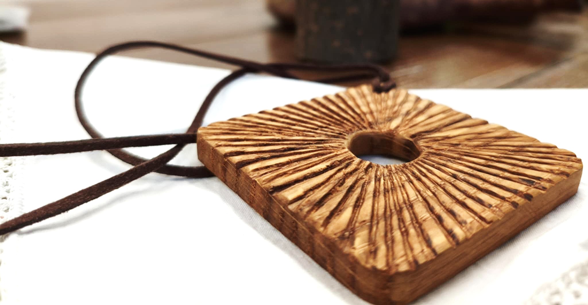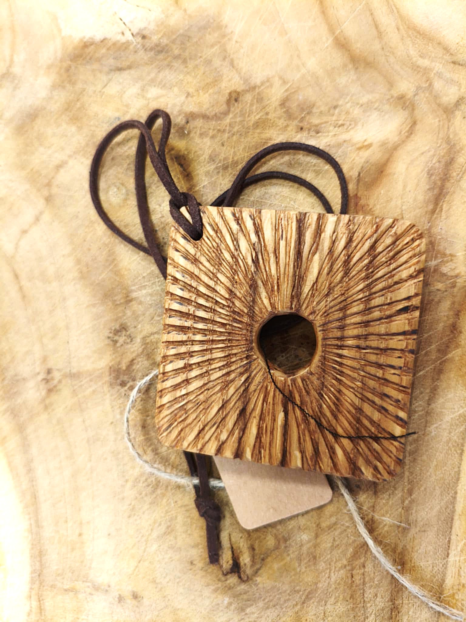 Biżuteria inspirowana pięknem natury. Oryginalny, unikatowy wisior wykonany z drewna wiekowego jesionu, na rzemyku. Prosty, inspirujący wzór, zachowujący istotę drewna. To małe dzieło sztuki, powstałe z pasji, cierpliwości i miłości do natury, wykonane z rzemieślniczą precyzją. Nazwa sugeruje, że artysta inspirował się mitologią Inków.